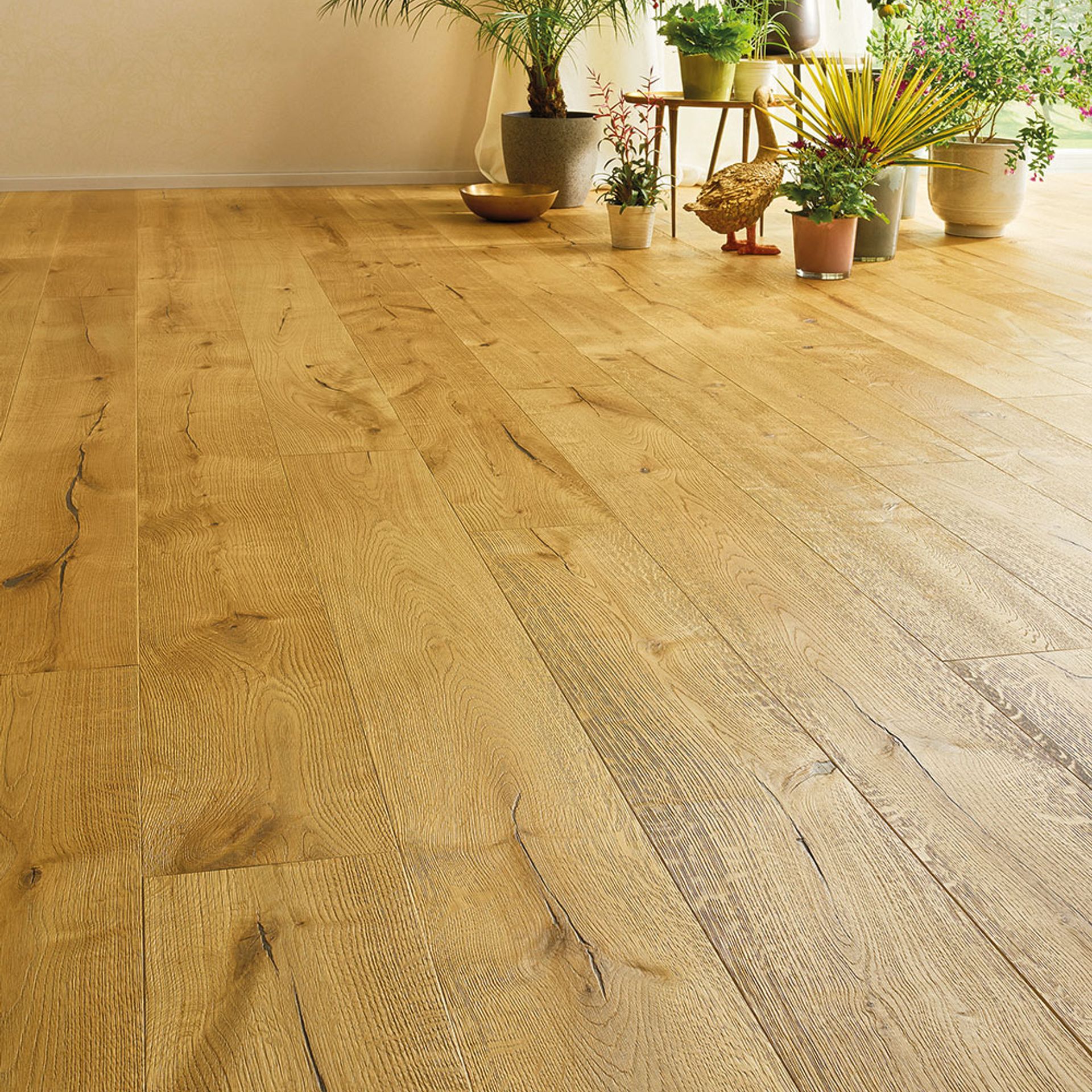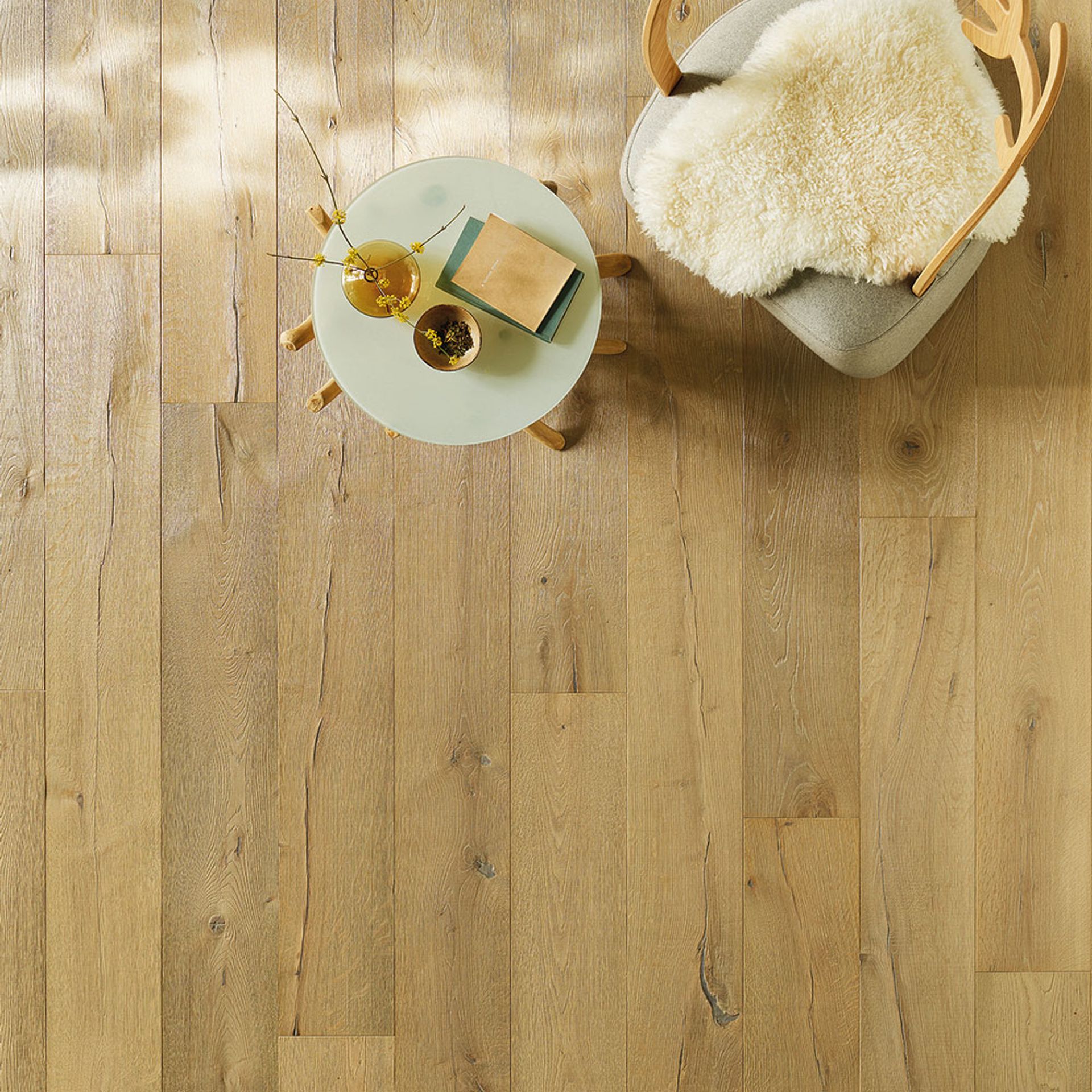 Die sehr beliebten Eichenböden sind durch die enorme Härte des Holzes besonders langlebig und halten einiges aus. Spielende Kinder, Haustiere und schmutzige Schuhe – alles kein Problem für diese Dauerbrenner-Böden! Einfach feucht wischen oder kehren – und der Boden glänzt in unverminderter Schönheit! Der Vorteil der Reliefoptik von gehobelten oder gealterten Dielen ist die Strapazierfähigkeit, da sich Kratzer oder sonstige kleine Gebrauchsspuren in die bestehende Gestaltung integrieren – und diese Böden auch nach vielen Jahren noch wie neu erscheinen.